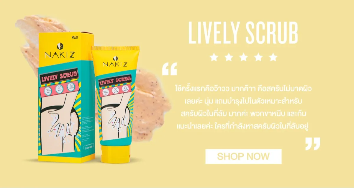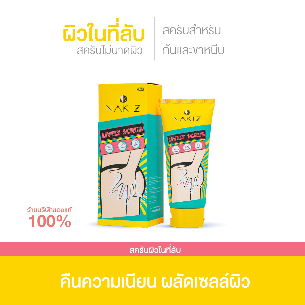 NAKIZ LIVELY SCRU - สครัป ก้นดำ รักแร้ดำ ขาหนีบดำ สิวหลัง หัวเข่าดำ ศอกดำ ลบเลือนรอยดำ แตกลาย